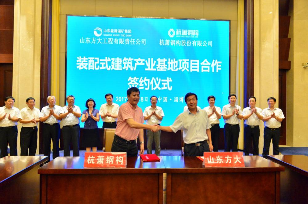 淄礦集團董事長孫中輝也表示,淄礦集團方大工程公司與杭蕭鋼構強強聯合,共同打造淄博綠色裝配式建筑產業基地,將加快促進傳統建筑產業向“搭積木一樣建造房屋”的新方式轉變,開辟企業轉型升級的新空間。