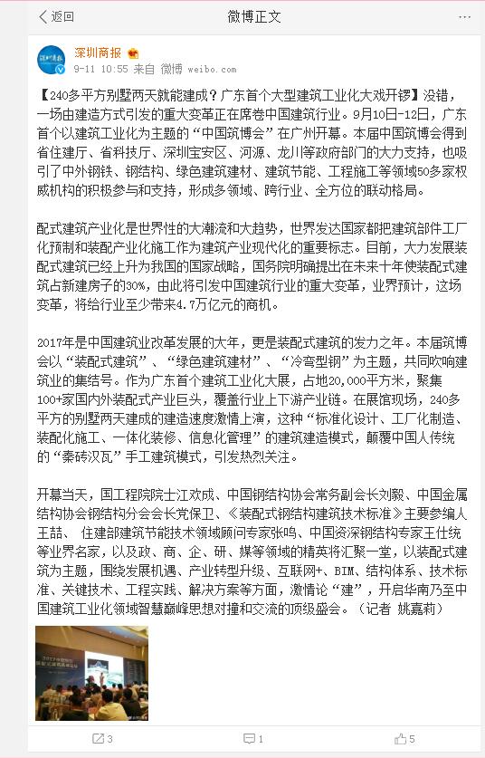 深圳特區報發布有關2017中國筑博會·廣州的報道 (2017-11-01)